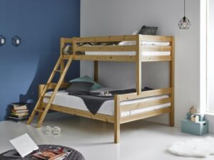 Sensacional litera de 3 plazas SIMPORO, fabricada en madera de pino macizo con cama superior de 90×190 Cm. y cama inferior de 135/140×190 Cm.